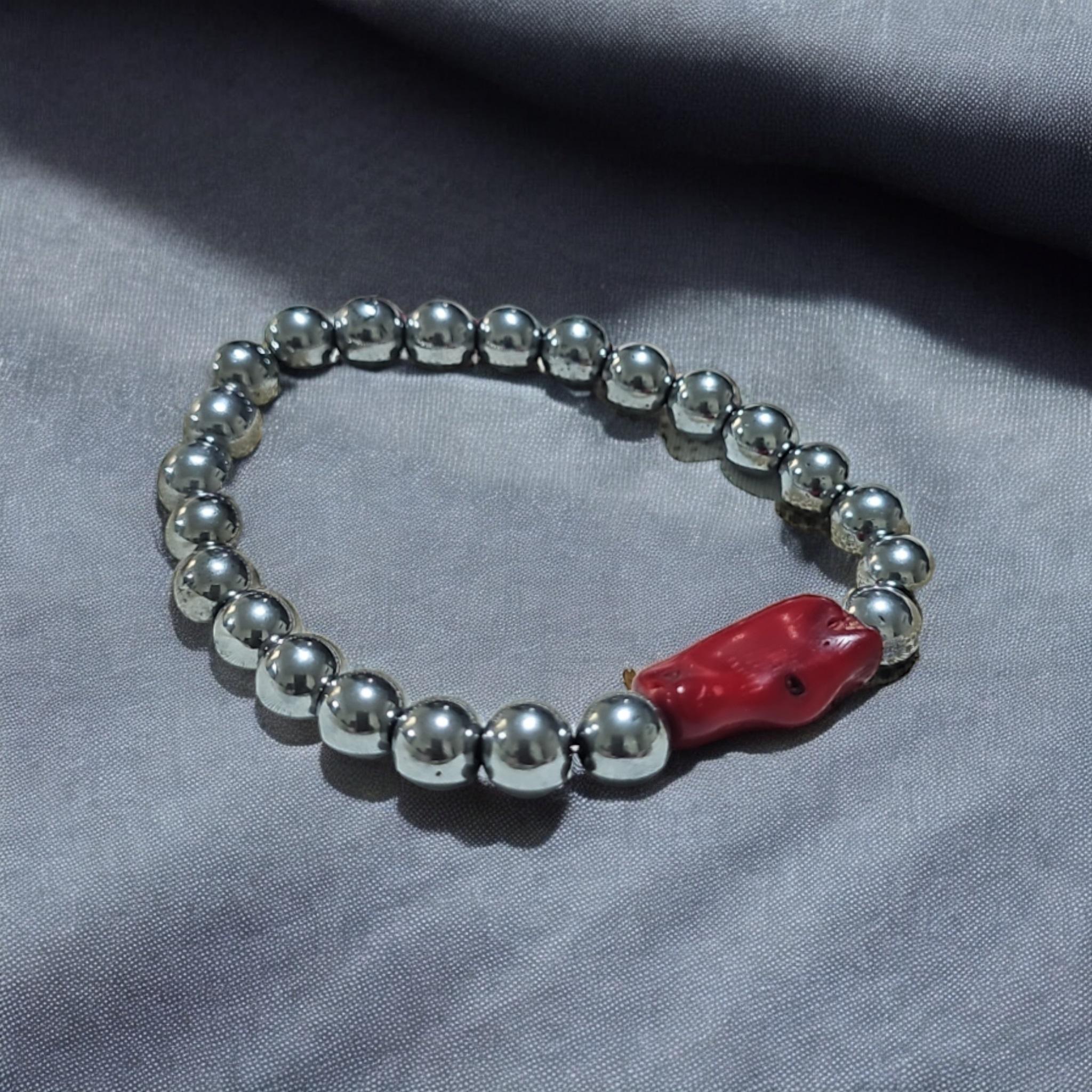اسورة هيماتيت مزينة بحجر المرجان الأحمر الطبيعي